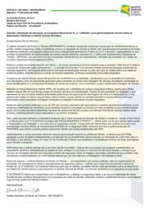 O Instituto Brasileiro de Direito de Trânsito (IBDTRANSITO) protocolou, nesta segunda-feira (17), um ofício endereçado ao Ministro da Casa Civil, Rui Costa, solicitando o retorno do Projeto de Lei nº 3.965/2021 ao Congresso Nacional. O pedido visa possibilitar um debate técnico mais aprofundado sobre as disposições relativas à vistoria veicular eletrônica (autovistoria), inseridas por emenda do Senado Federal no texto final aprovado.