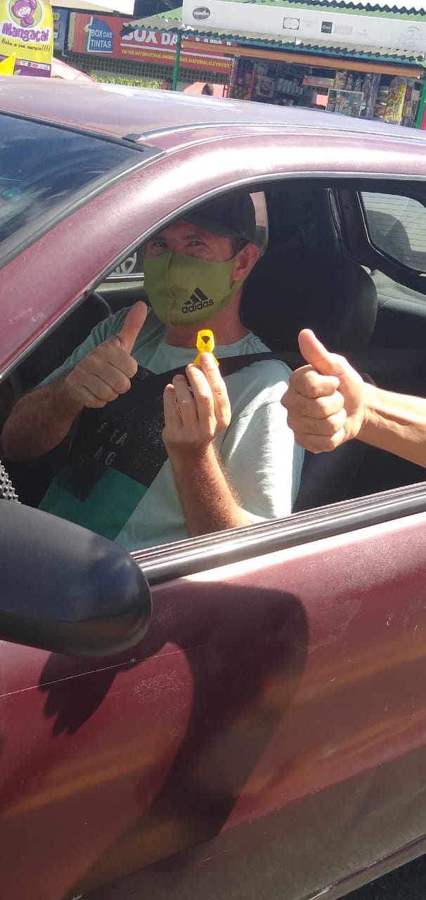 Durante a ação foram distribuídos laços amarelos, simbolo do movimento Maio Amarelo, e também símbolos da campanha “Streets for life” como bandeiras brancas e amarelas.